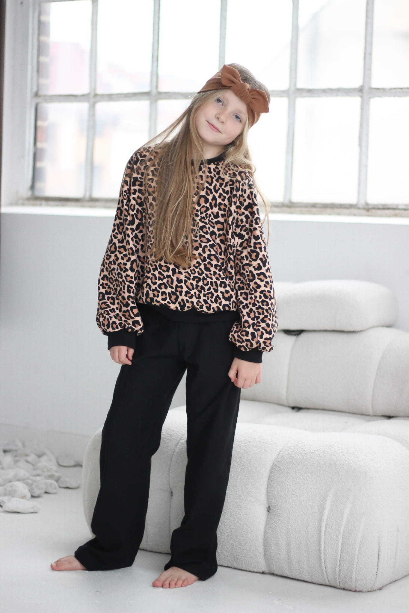 Bufiaste rękawy oraz luźny krój nadają sylwetce lekkości i tworzą efekt modowej nonszalancji. Wzór panterki dodaje stylizacji charakteru i jest łatwy do łączenia zarówno z czernią, beżami, jak i karmelami.