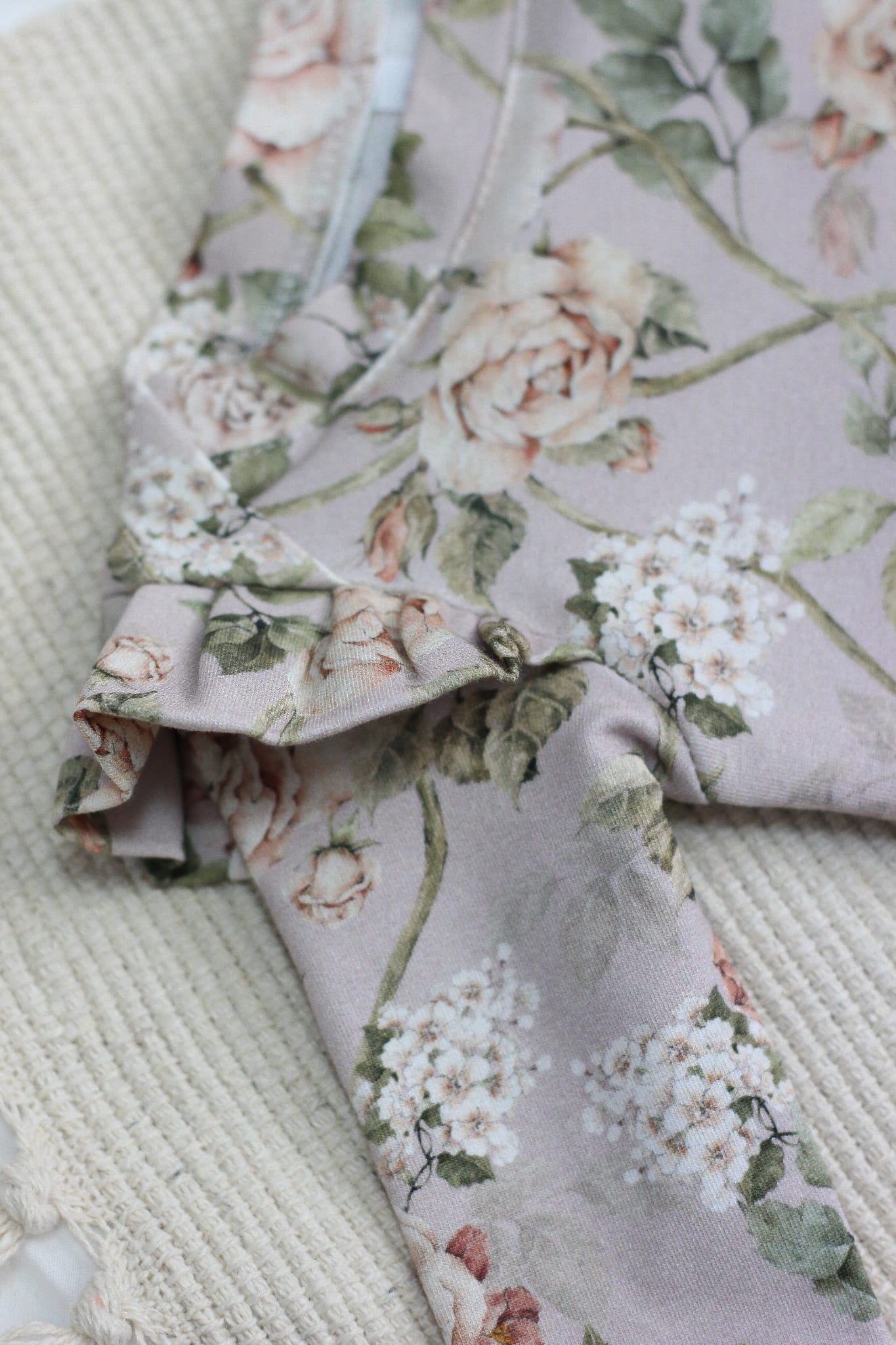 Piękny wzór, który znajduje się na całym ubranku naniesiony jest techniką druku cyfrowego, co sprawia, że nadruk jest niewyczuwalny. Urocze dwustronne falbanki znajdujące się na ramionkach dodają uroku i elegancji.