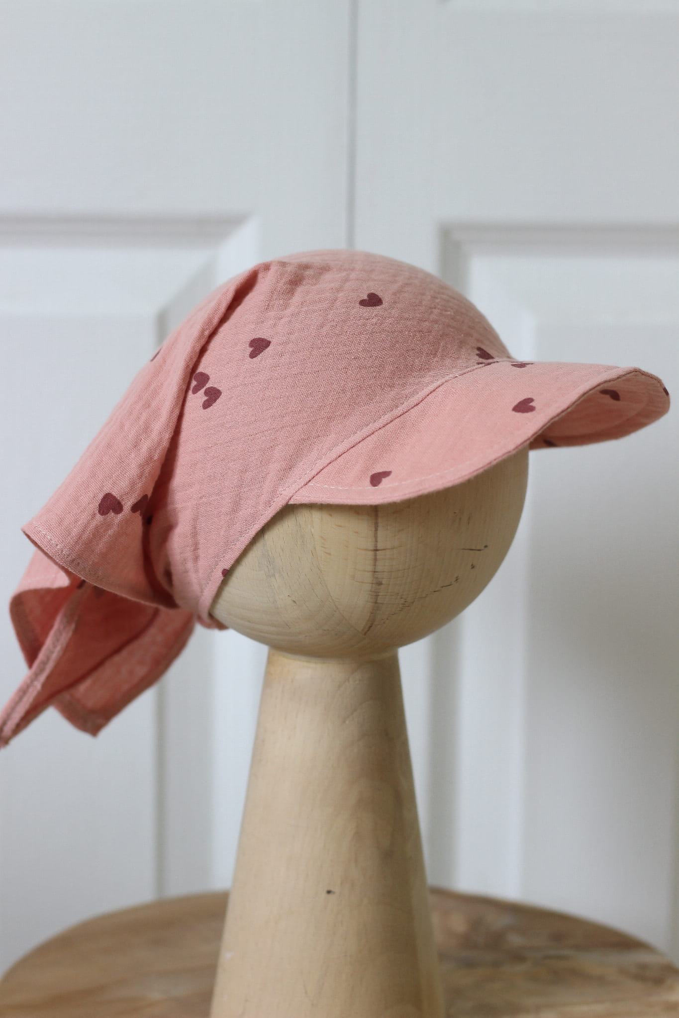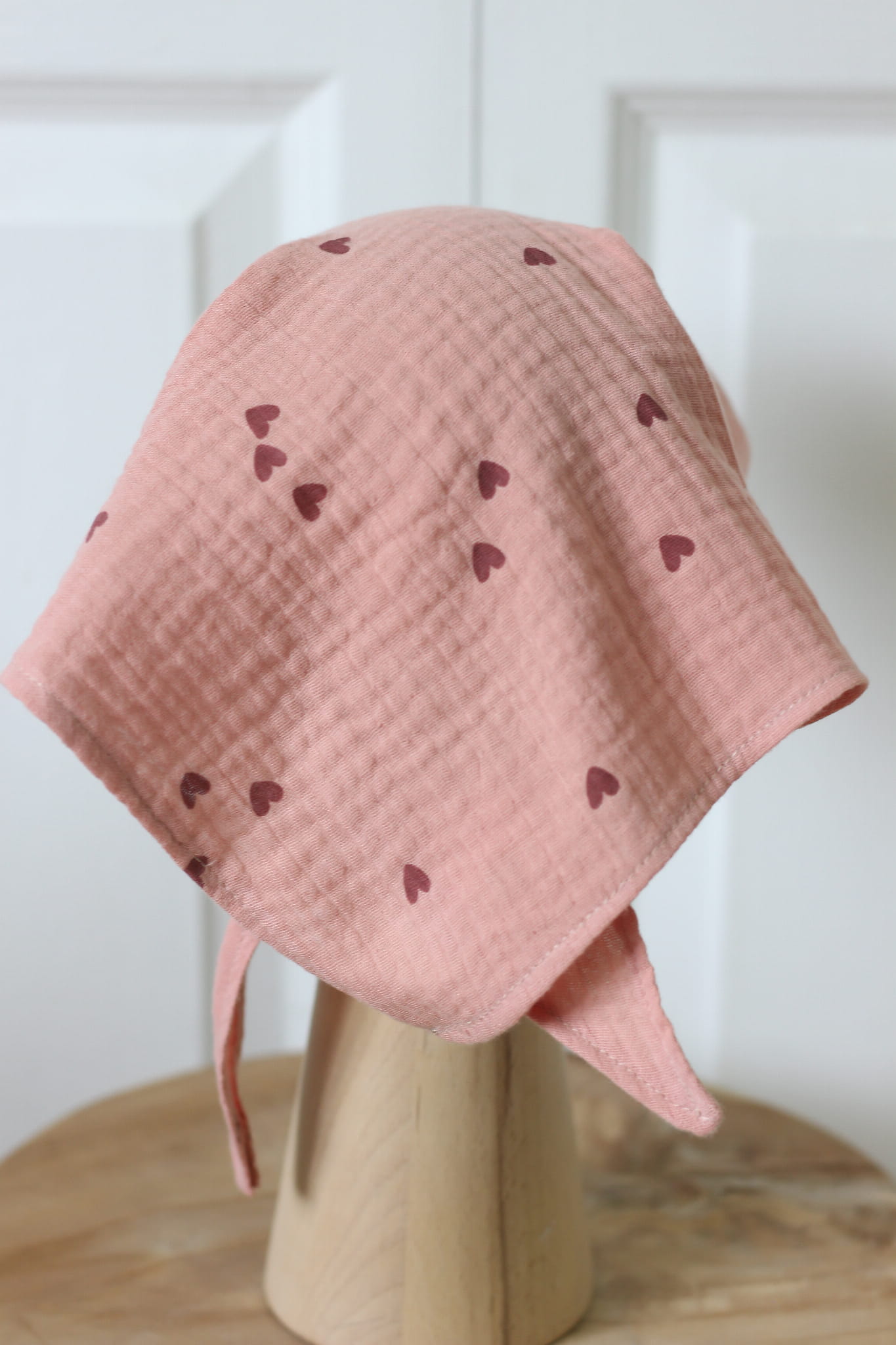 Lekka i przewiewna chusta z muślinu serduszka. Chroni główkę i szyję dziecka przed słońcem i wiatrem - niezastąpiona na wiosnę i lato