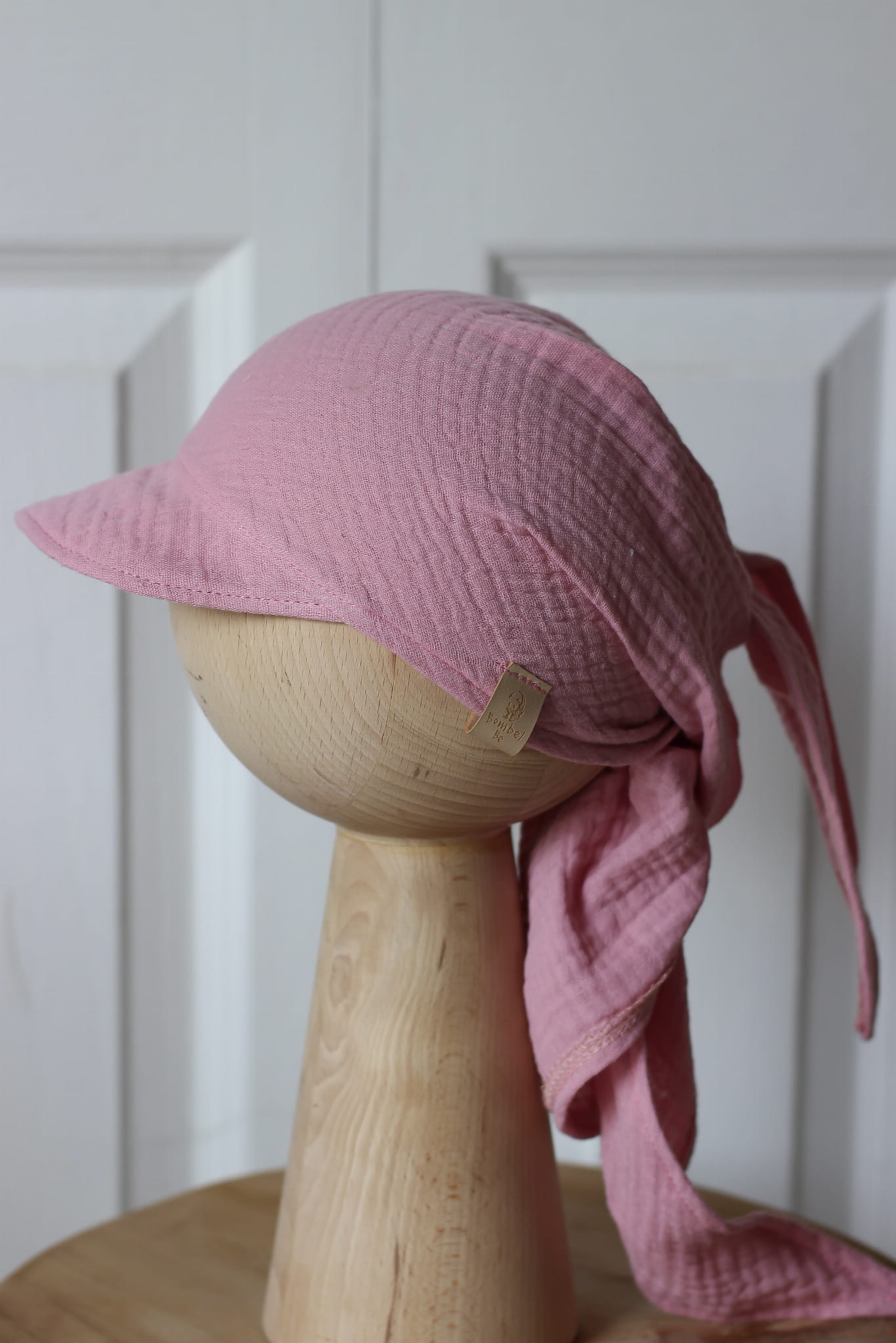 Muślinowa chustka dziecięca z daszkiem. Niezwykle przewiewna, miękka i lekka. Uszyta w 100% z muślinu bawełnianego z certyfikatem GOTS .