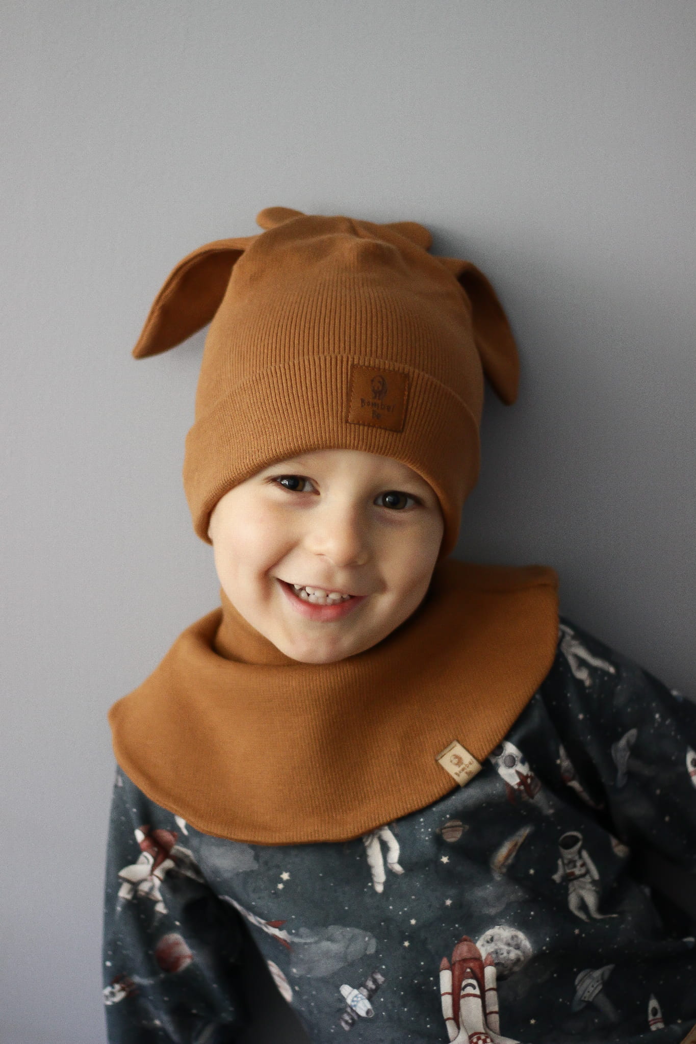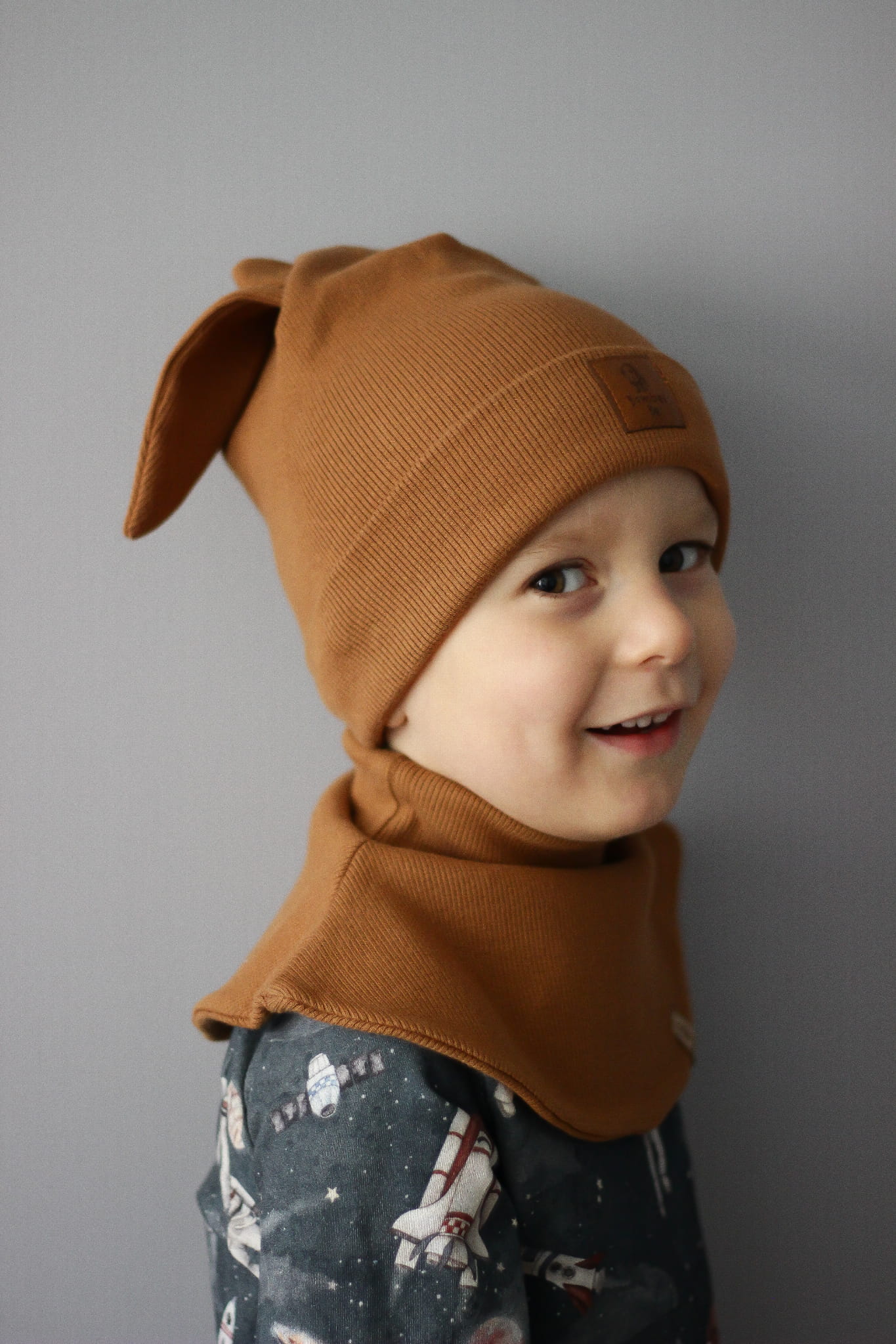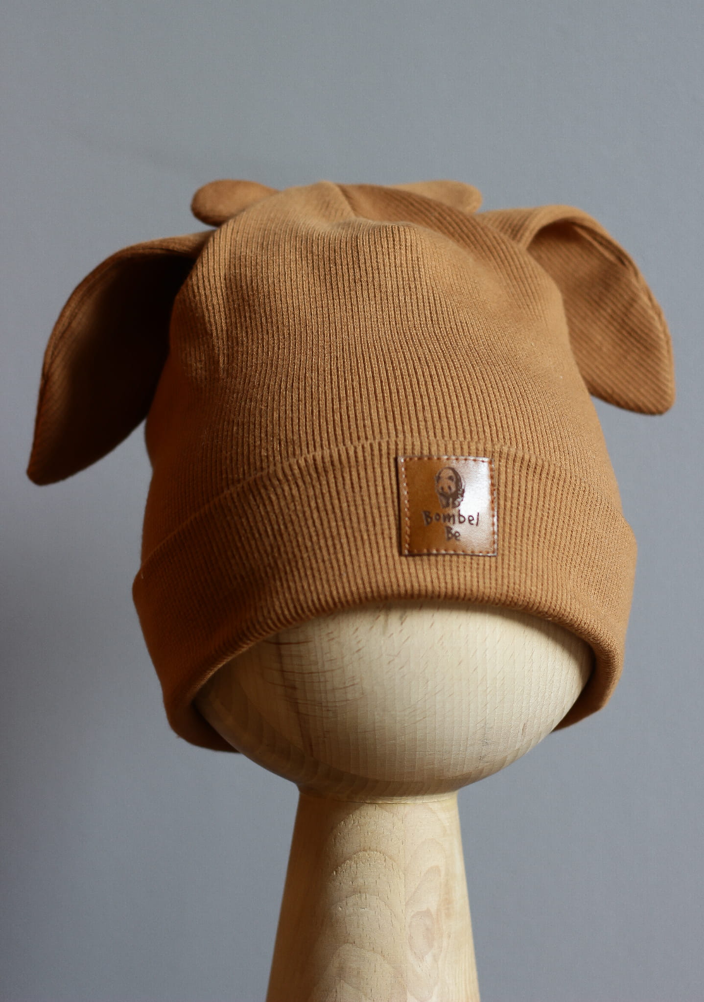 Czapka dziecięca prążkowana KRÓWKA - karmel