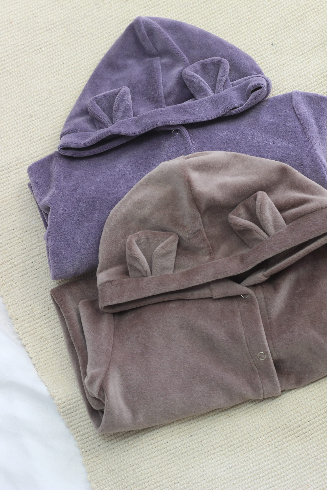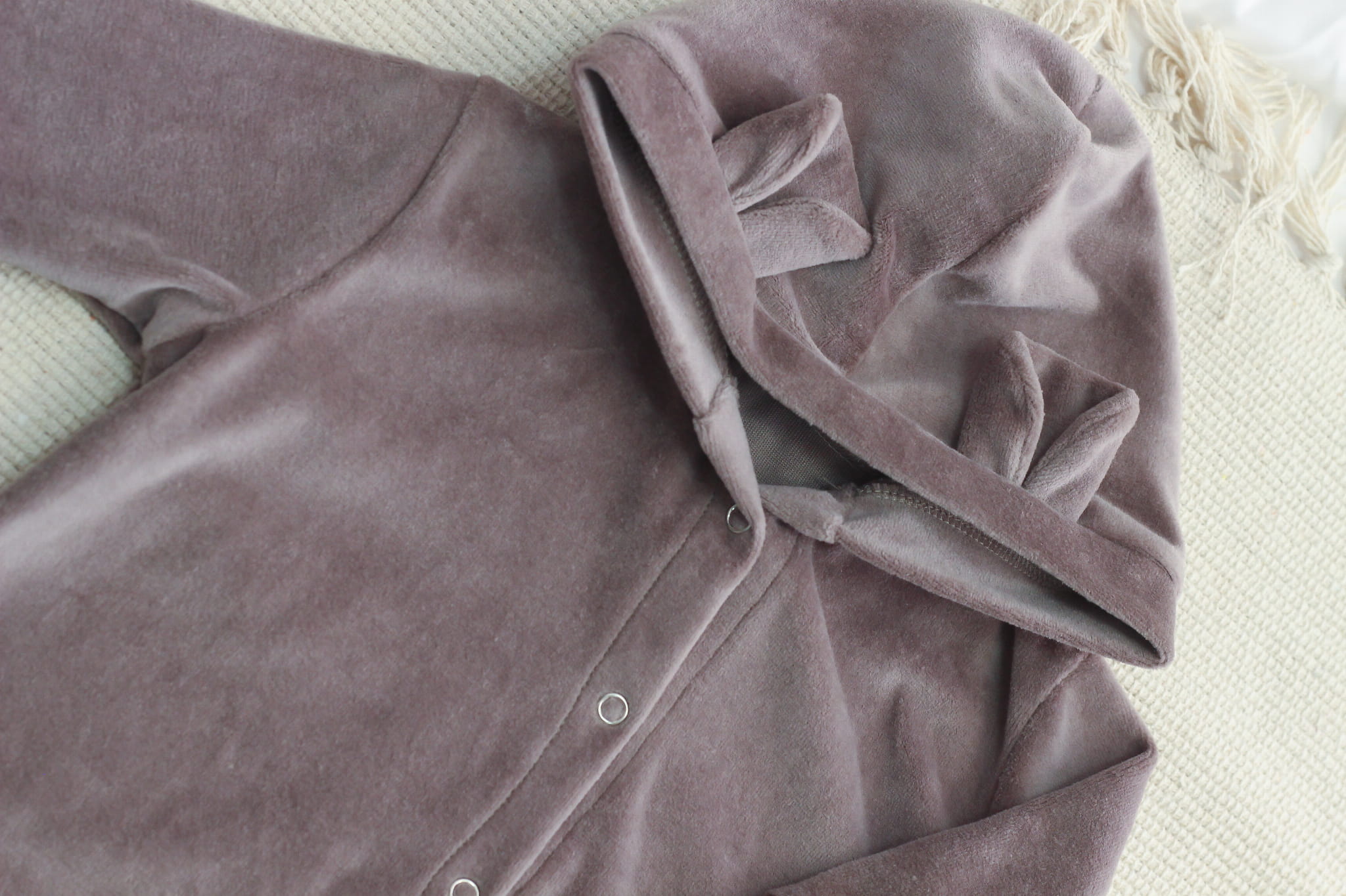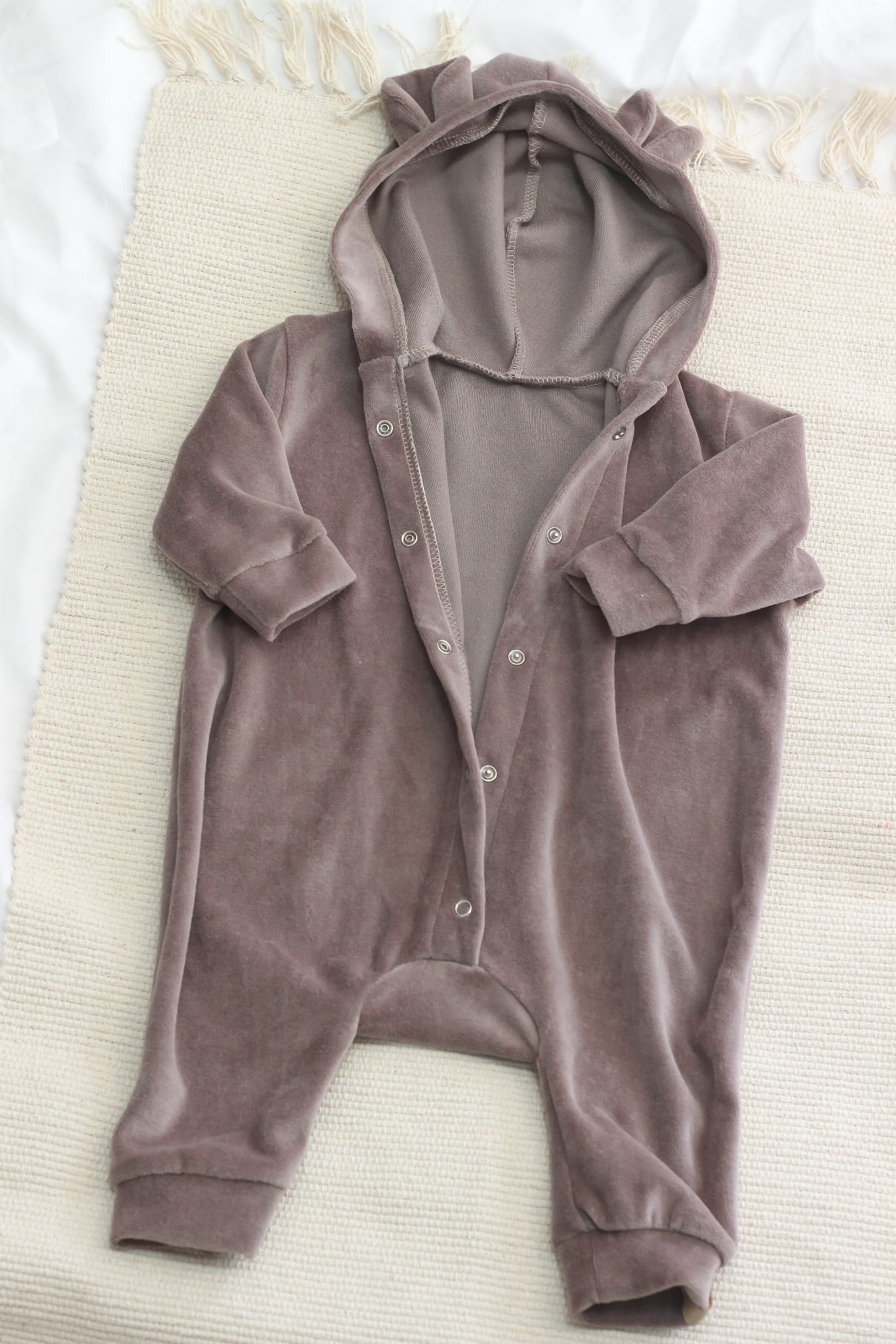 Kombinezon niemowlęcy welurowy mokka z uszkami misia