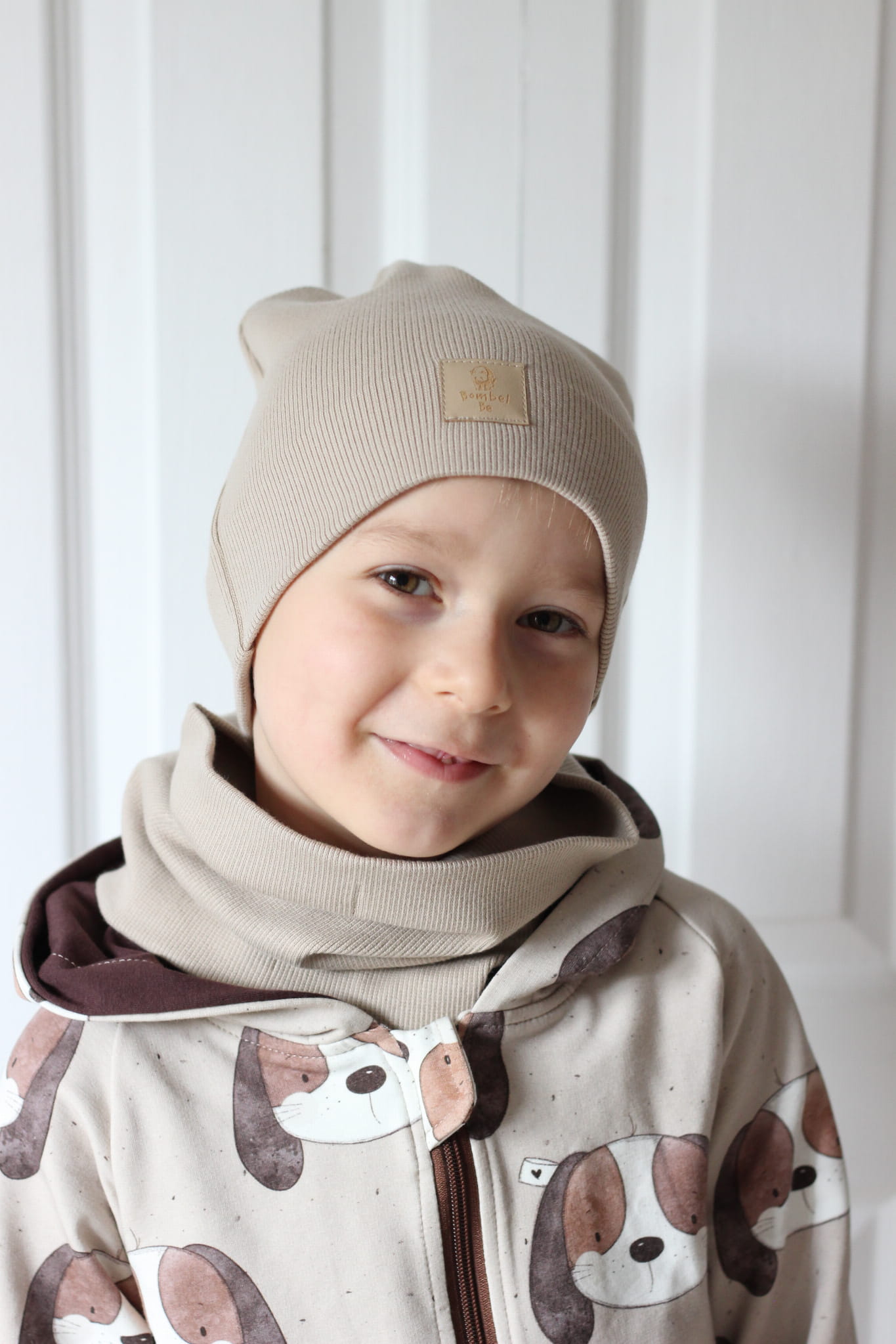 Beżowy komin to doskonały wybór dla dzieci, które cenią sobie komfort i styl. Stwórz modny zestaw, łącząc go z czapką w tym samym odcieniu!