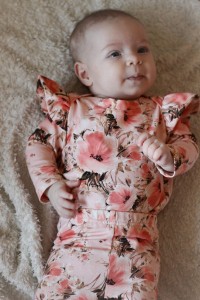 Legginsy dziecięce FLORA – Piwonie na brzoskwiniowym tle