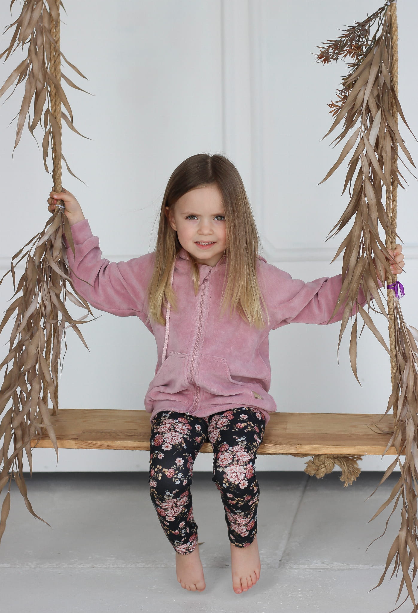 Legginsy Midnight Bloom świetnie komponują się z naszą bluzą o tym samym wzorze, a także z jednokolorowymi bluzami w odcieniach różu, beżu i czerni. To must-have w każdej dziewczęcej garderobie!