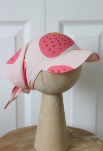 Muślinowa chusta dziecięca – Truskawki na różu brzoskwiniowym
