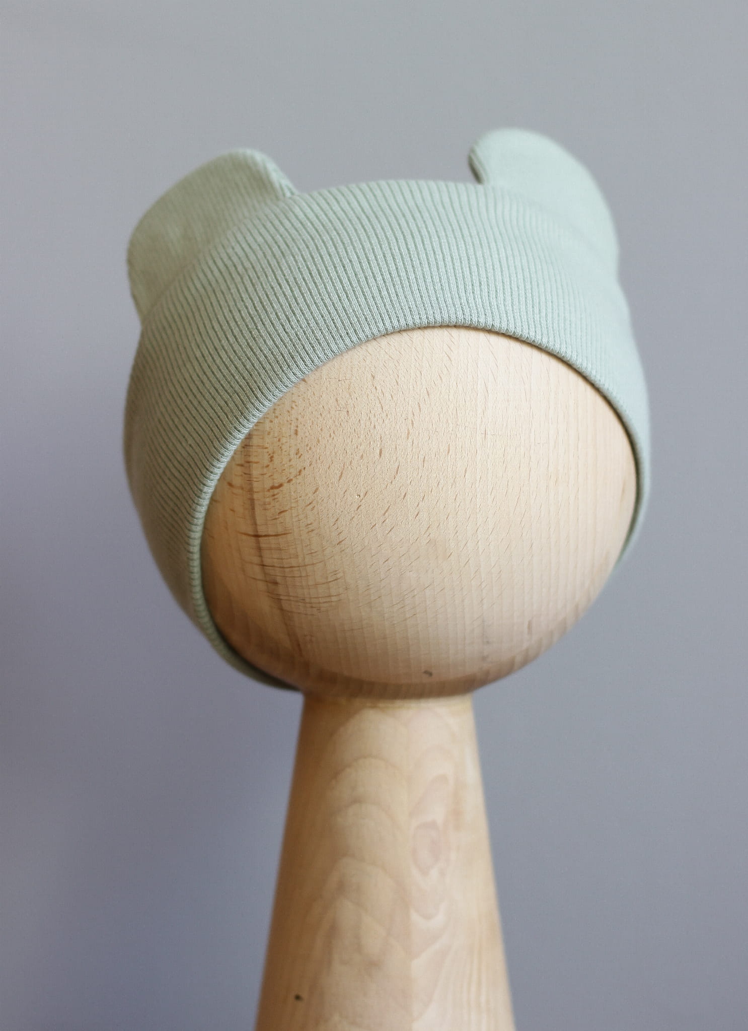 Delikatna miętowa opaska z uszami misia, wykonana z miękkiej dzianiny. Elastyczna, wygodna i ręcznie szyta. Idealna dla dziewczynek i chłopców.