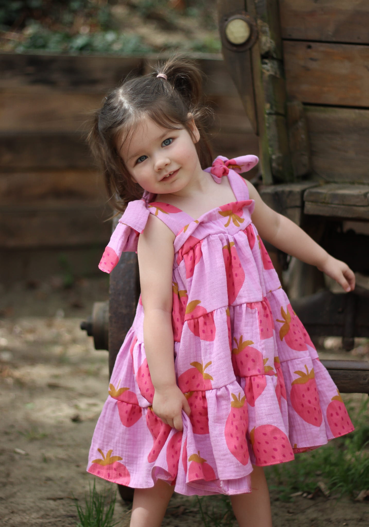 Sukienka muślinowa dla dziewczynki Bombel Be truskawki