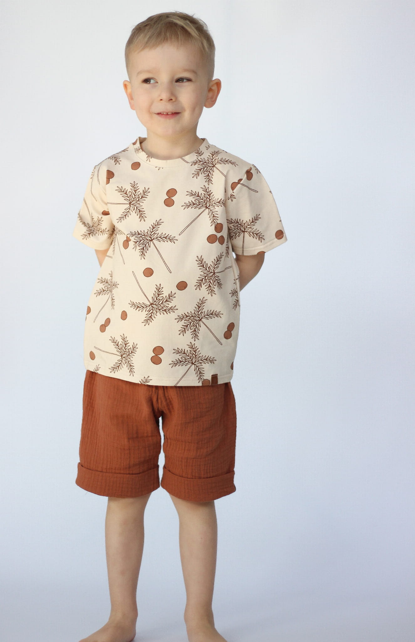 T-shirt dziecięcy KOKOSY z delikatnym nadrukiem cyfrowym w piękne palmy kokosowe. Sprawdzi się na ciepłe wiosenne, jakże idealnie wpasuje się na wypad na plażę, ochraniając wrażliwą skórę dziecka przed słońcem a jednocześnie pozwalając jej oddychać. W upalne, letnie dni będzie idealnym rozwiązaniem dla biegającego malca ponieważ koszulka została wykonana z oddychającego jersey’u! Tkanina posiada Certyfikat Standard 100 by OEKO-TEX ® co sprawia, że tkanina jest bezpieczna dla Twojego dziecka, a rozciągliwość tej tkaniny sprawia, jest doskonała dla noworodków.
